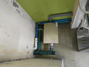 そのため、100分の1勾配(1mあたり1cmの傾き)を計算しながら、配管のルートを再設計する必要がありました。